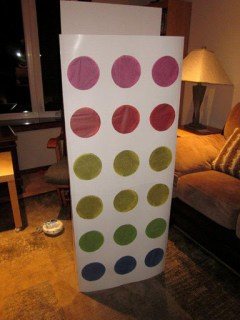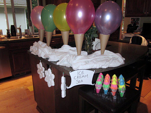 bubble wrap on the floor, so they can pop through the ice cream sea (the board game had lot of bubbles around Queen Frostine, so since a bubble machine probably would have been a little too messy for inside, I thought of this.