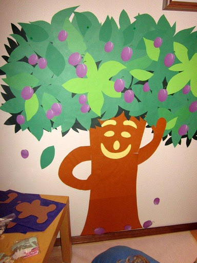 My wonderful older daughters did all the coloring of the dots with some sharpie markers!  We just taped on the leaves and stem.  (warning… don’t let your kids play with these balloons when you take them down… the sharpie comes off everywhere… TRUST me!)