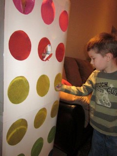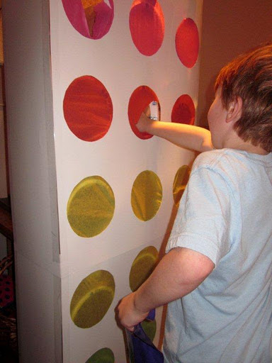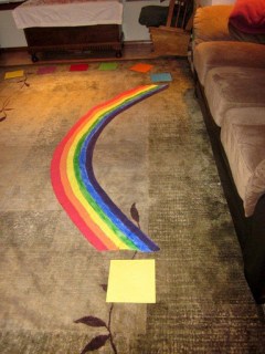 At the other end of the rainbow, I placed a “punch-out” game that I made.  See my previous blog post to see how we did that.  This we also came back to play on our second time around the game, so each kid just took a turn punching and getting a prize.