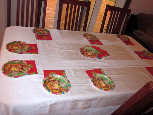 Strawberry confetti from birthday express, Table cloth from oriental trading.  The maize printout and coloring sheets are from the strawberry shortcake website.