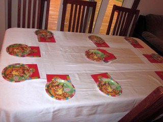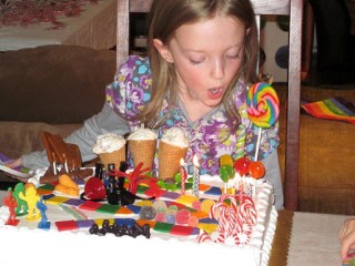 I ran out of time to make a piñata, so I bought this at our local party store… I think it may have been the first time we used a piñata that wasn’t a pull string one… it was interesting!  (my girls are not much into hitting with a bat)