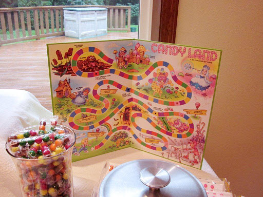 Welcome to Candyland!  This was a super fun party to create (but I think I do say that about most of the kid’s parties).  I decided to set up the house to look like a life-size candyland game board.
