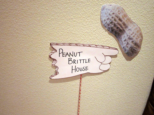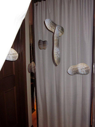 Inside the peanut brittle house I printed and cut out peanuts to hang from the ceiling and also taped some to the wall.
