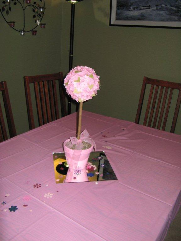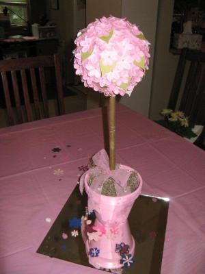 | This topiary was given to the new mommy for the nursery. The flowers are paper and they were made from my Cuttlebug die cut machine. |