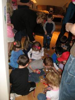 We flew back downstairs to Peru (the dining room) where all the kids were able to decorate maracas with wood markers. The maracas were the souvenir.