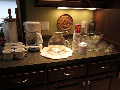 | forgot to take a picture before the party, but all the purses were lined up top. |